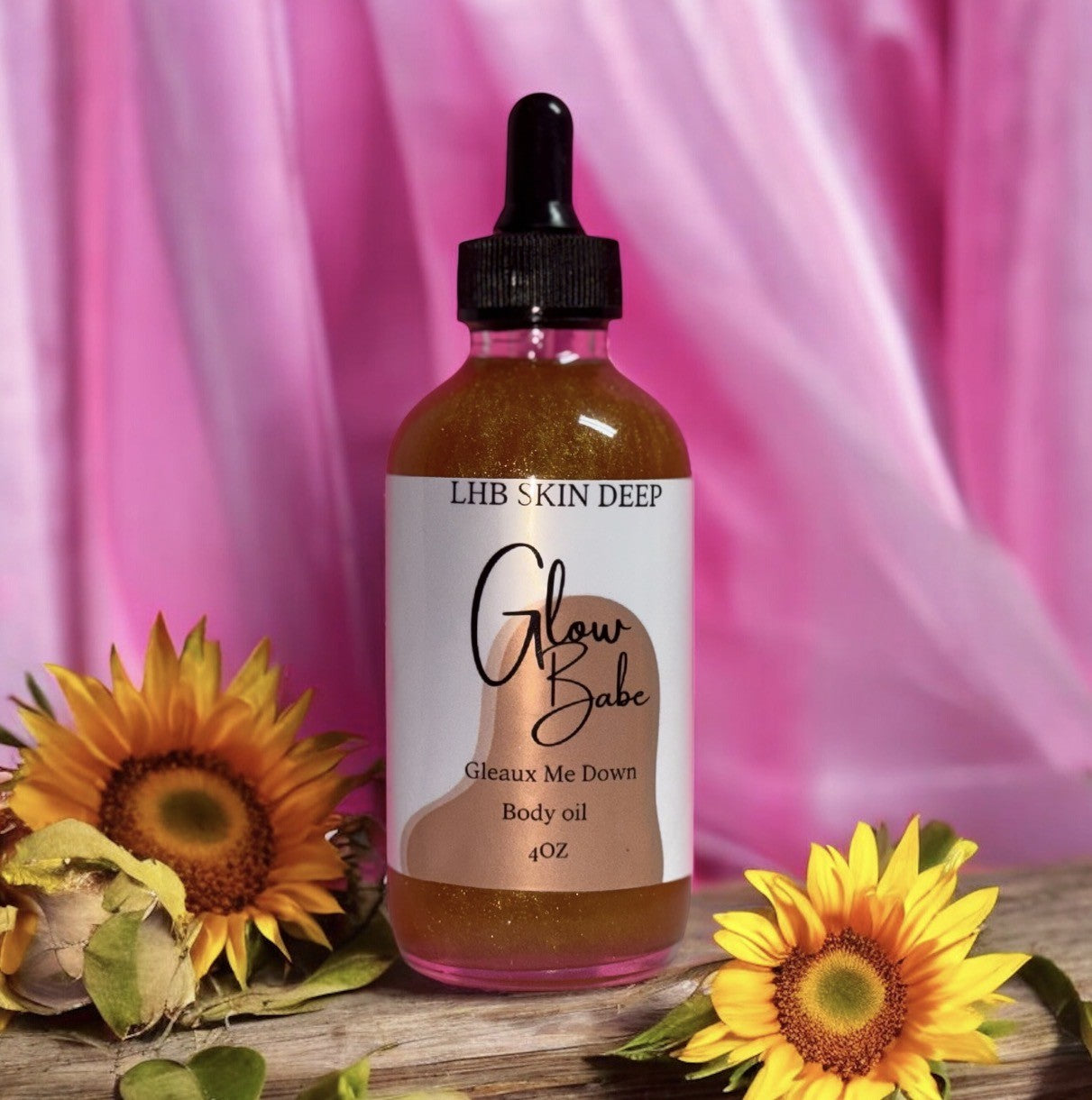 Get your glow on with Gleaux Me Down, the golden shimmer body oil your skin didn’t know it needed. Lightweight, ultra-hydrating, and infused with radiant gold mica, this luxe oil leaves your body dripping in shine without feeling greasy. Whether you're headed to brunch, the beach, or bed—this bottle gives main character gleaux energy with every drop.